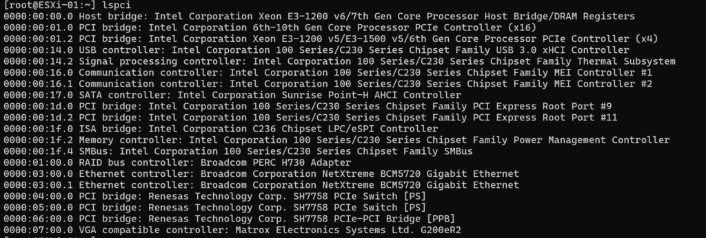 今回は ESXi ホスト(Dell PowerEdge T330)でlspciコマンドを実行したことをきっかけに、サーバー内部のハードウェア構成やデータの流れを学んだので、その内容をまとめていきます。